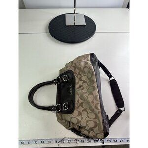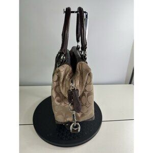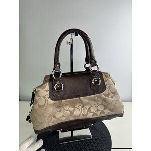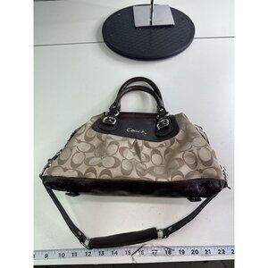 Coach Bag Ashley 2 Way Strap Handle Brown Leather Signature Fabric F1182-F15443