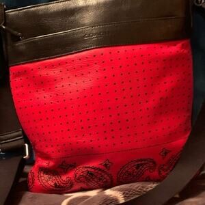 Coach Bandana Leather Crossbody Red and Black Paisley