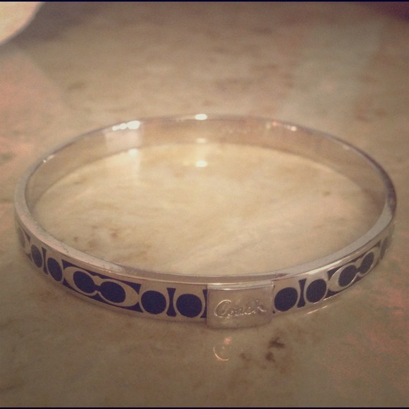 Black & silver authentic coach bangle. Coach enamel on outside & engraved logo on inside. Diameter: 2 5/8"