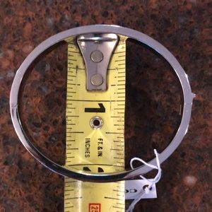 Beautiful bangle with an easy-open clasp. Coach signature logo all around the bracelet, embellished with small round stones. Has a bit of an oval shape. Measurements as in the photos.