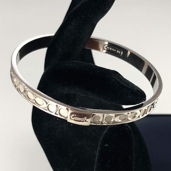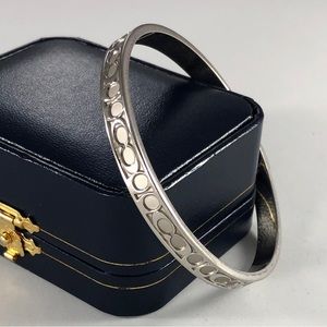 Coach Bangle, Silver Signature C White Bracelet. Diameter (inside) of bracelet is 2.5”, 1/4” thick.