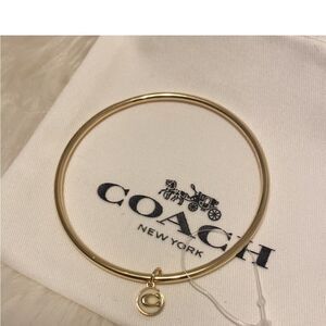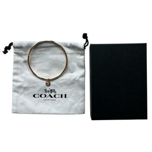 This is an authentic goldtone Coach logo dangling “C” charm bangle bracelet; never used. The charm has a white enamel center. Comes with a Coach dust bag and an unbranded black box. Let me know if you have any questions! Bundle and save, and please note that I reuse shipping materials whenever possible ♻️