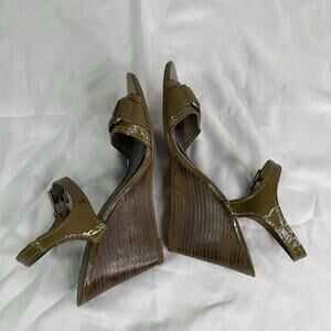 Coach Beale ankle strap Wedge Sandals Size 9.5 Patent Leather Green, Summer, Spring, Fall, Chic, Glam, Casual, Classic.