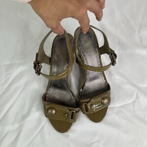 Coach Beale ankle strap Wedge Sandals Size 9.5 Patent Leather Green Chic, casual