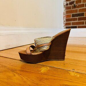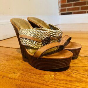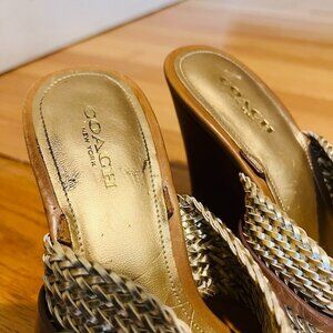 Coach Beatriz Women Sz 6.5 Wedge Heel Platform Sandal Gold Tan Brown Slingback