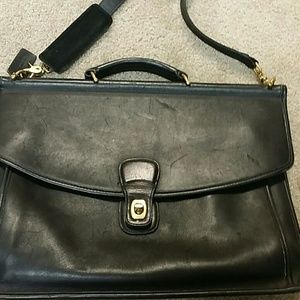 Genuine Coach bought in 2009 for $499. Moderate use. Some light wear bottom left corner. Inside flap has light wear and first interior section light wear.