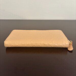 Coach Beige Debossed Patent Leather Zip Around Accordion Wallet
