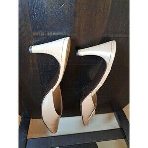 Elegant beige leather sandals. Slip-on design with button detail. Perfect for casual wear. Love the shoes just didn’t work for my outfit.
