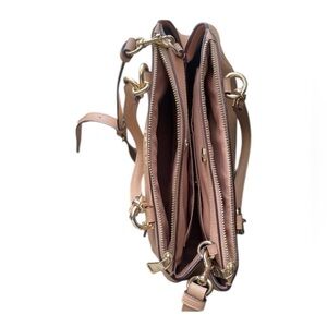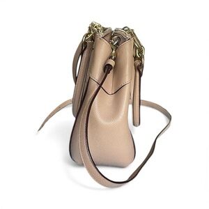 Chic Coach satchel in beige leather. Features dual handles and a detachable strap. Ideal for versatile styling. Gently used. It’s in good condition.
