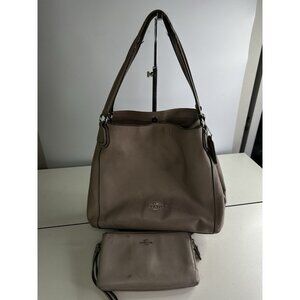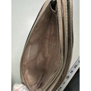 Coach Beige Pebbled Leather 3 Compartment Shoulder Bag Purse Front Logo