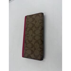 Coach Beige Red Leather Signature Tri-Fold Check-Book Buckle Wallet Used Once