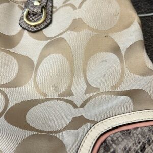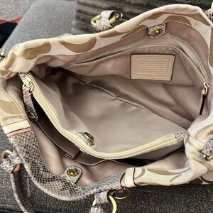 Coach Beige Signature Canvas And Python Embossed Leather Ashley Tote