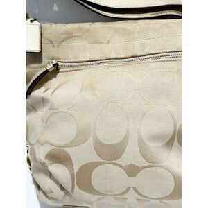 Coach Beige Signature Canvas C Print Canvas Leather Trim Hobo Shoulder Bag Gold