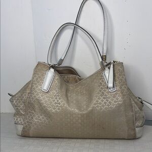Coach Madison OP Art white :khaki Carryall Shoulder Bag 27905