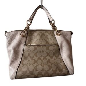 Elevate your style with the Coach Beige Signature Tote Bag. This elegant bag features a classic design with a beige color that complements any outfit. Perfect for everyday use, it combines functionality with timeless fashion.