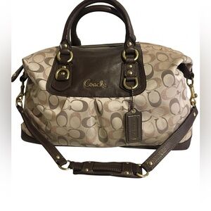 Coach Beige and Brown Leather Satchel with Gold Hardware