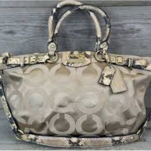 Elegant Coach tote with signature pattern. Beige and cream design. Perfect for everyday use. Great used condition. No call outs