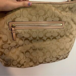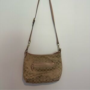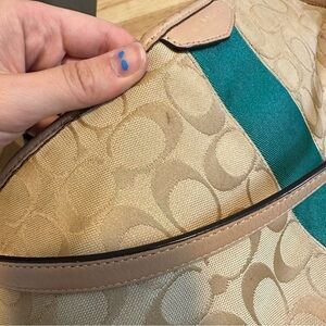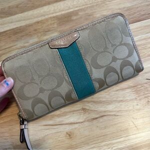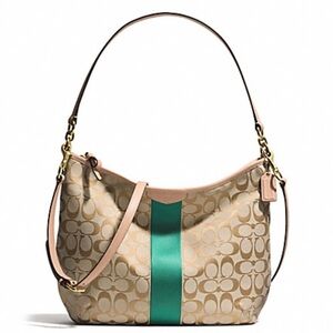 Coach Beige/Green signature canvas & leather Devin stripe shoulder bag & wallet
