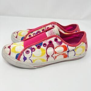 Coach Bev Slip on Sneaker Colorful C Logo Bright Preppy Hot Pink Laceless Size 7