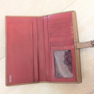 Coach Bi Fold Camel Wallet Leather Red Interior