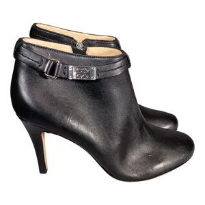 Coach Biancca Ankle Booties Boots Black Leather Side Zipper Stiletto Heel 10 B