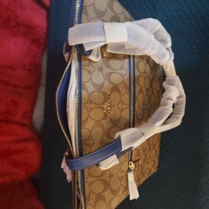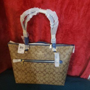 Coach Big Gallery Tote Bag, Light tan with blue trim brand new with tags
