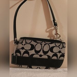 Coach Silver Black White Black 2 & Leather Trim Small Monogram Wristlet Wallet