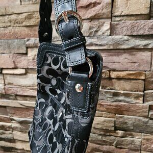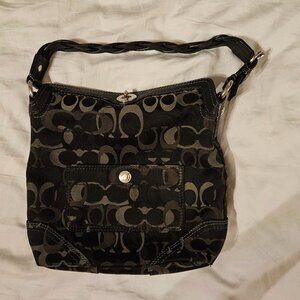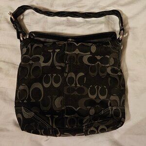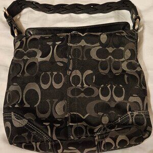 Coach Chelsea Signature Black Canvas Leather Trim Woven Strap Shoulder Bag