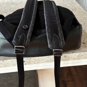 This Coach backpack in black offers a minimalist and versatile design, perfect for everyday use. Its sleek urban aesthetic and high-quality material make it a practical choice for any setting.