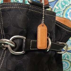 Coach Black Belted Shoulder Bag with Tan Leather Accents