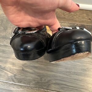 Coach Black & Brown Subtle Reptile Print Platform Almond Toe Heels - Size 7 EUC