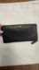 Sleek black leather wallet by Coach. Features a unique textured pattern and secure zip closure.