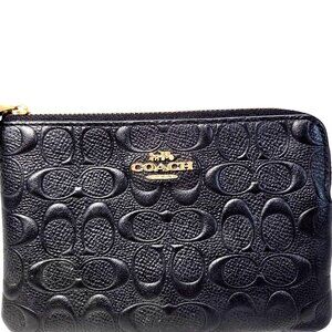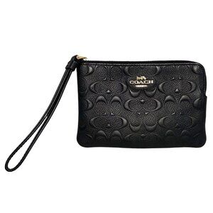 Coach Black Corner Zip Wristlet In Signature Embossed Leather F67555