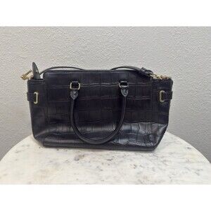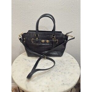 Coach Black Croc Embossed Leather Satchel Shoulder Crossbody Bag