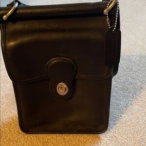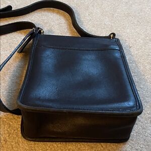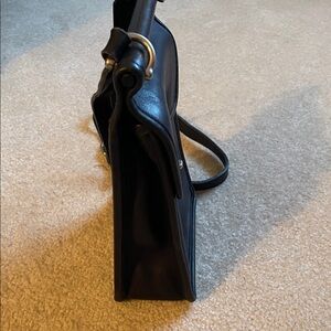 Elegant black crossbody bag. Sleek design with flap closure. Perfect for everyday use.