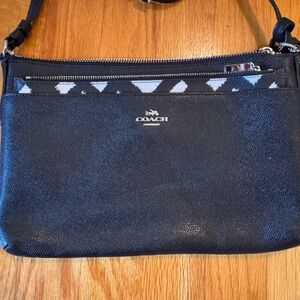 Elegant crossbody bag by Coach. Features a textured finish and front zipper detail.
