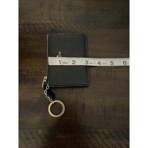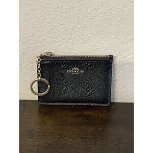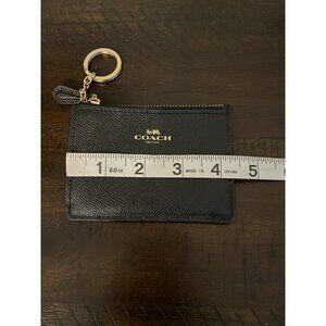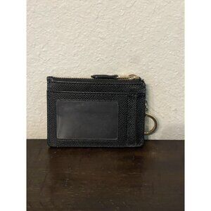Coach Black Crossgrain Leather ID Card Case Key Chain Wallet Gold Hardware
