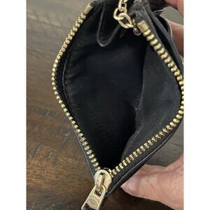 Refined and understated, this Coach New York key pouch embodies quiet luxury with its clean lines, timeless structure, and polished gold accents. Crafted from durable black crossgrain leather, it features a zip-top closure, an attached key ring, and an exterior ID window — offering effortless organization in a minimalist silhouette.