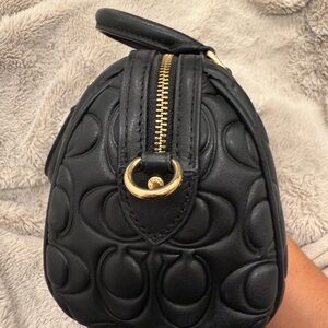 Chic and stylish Coach satchel. Features embossed design. Perfect for any occasion.