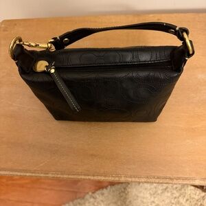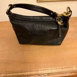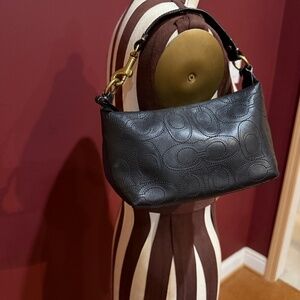 Coach Black Embossed Signature C Mini Leather Top Handle Bag Purse