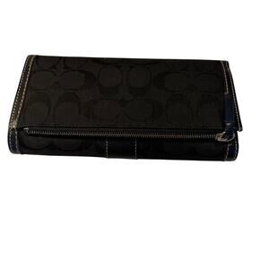Coach Black Fabric Leather Monogram Checkbook Wallet 7.5x4”