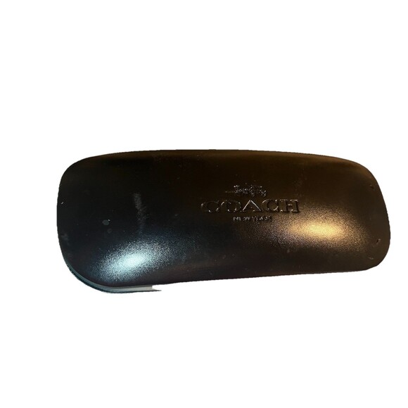This Coach black faux leather clamshell hardshell glass case ideal for glasses or sunglasses. It is a hard-shell case with a firm seal when closed, lined with soft material to keep your glasses safe at all times. PLEASE READ THE CONDITION DESCRIPTION AND SEE ALL PHOTOS BEFORE PURCHASE.