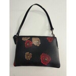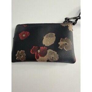The Coach Black Floral Wristlet Zip Close wallet is a stylish and versatile accessory for women. Made from leather with a pebbled finish, this mini rectangular clutch features a beautiful floral pattern on the black exterior. The zip closure and wristlet strap make it convenient for travel, parties, or casual outings. The silver hardware and lightweight design add a touch of elegance to the purse, while the lined interior with credit card slots offers both fashion and functionality. Perfect for those who appreciate a classic Coach style with a trendy twist.