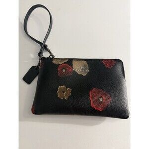 Coach Black Floral Wristlet Zip Close wallet Excellent Condition