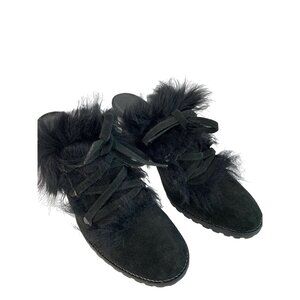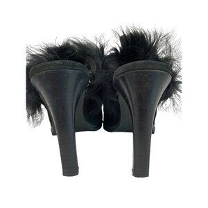 Coach Black Fur-Trim Kristy High Heel Mules Suede Size 9.5B 7269 Italy Bootie