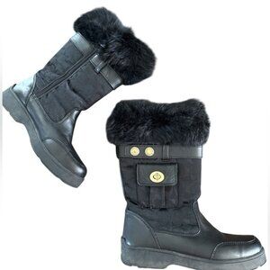 Coach Black Fur-Trimmed Turn Lock Pocket Winter Boots Size 7.5