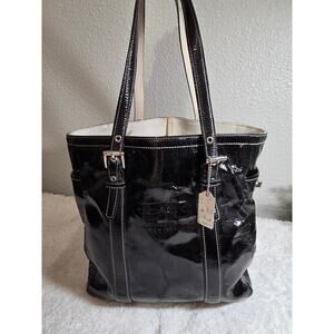 Coach Black Glazed Leather Gallery Lunch Tote Bag