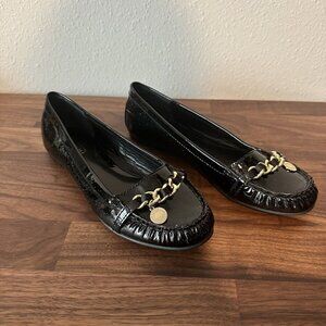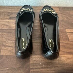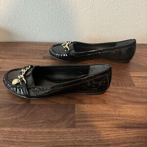 Coach Black Glitter Flats Loafers Drivers Charm Designer Patent Leather Size 6.5