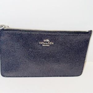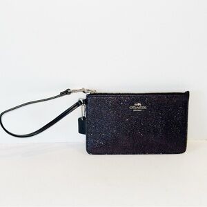 Coach Black Glitter Wristlet Coin ID Zip Pouch with Clip
