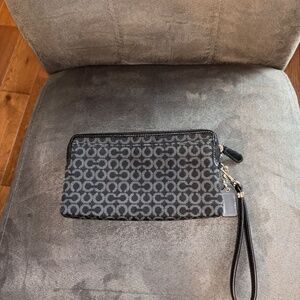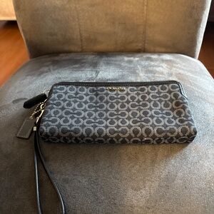 Coach Black Gray OPC Double Zip Wristlet Wallet